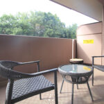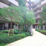 エントランスから部屋へ向かう途中には中庭があり、緑豊かで落ち着いた雰囲気です。