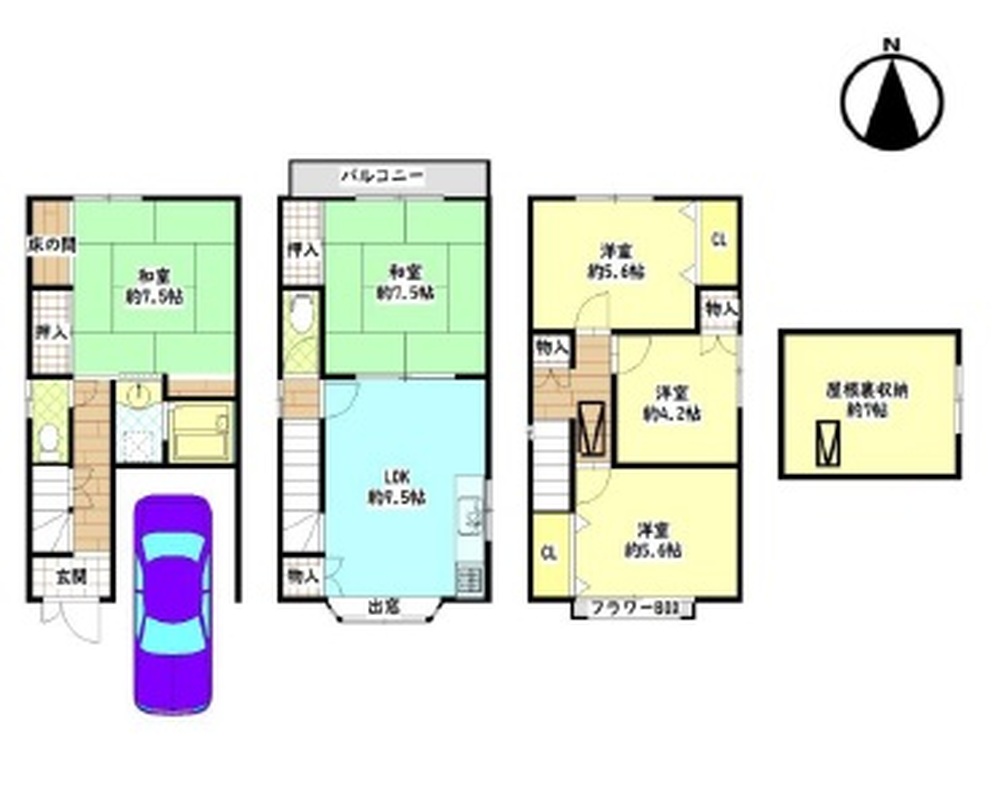※車庫付き、屋根裏収納付き
