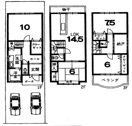 洋室 7.5帖 1室 3階
