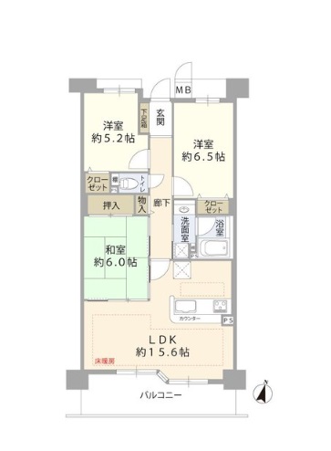 • 最上階 南向きバルコニー