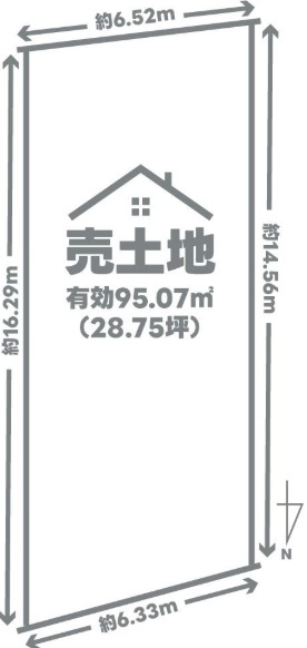 ※有効土地面積95.07㎡(公簿107.64㎡ー私道負担12.57㎡)
