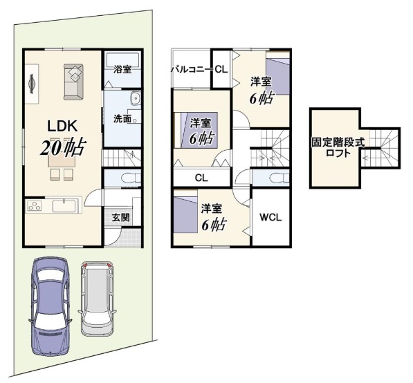 • 区画図+建物プラン例
