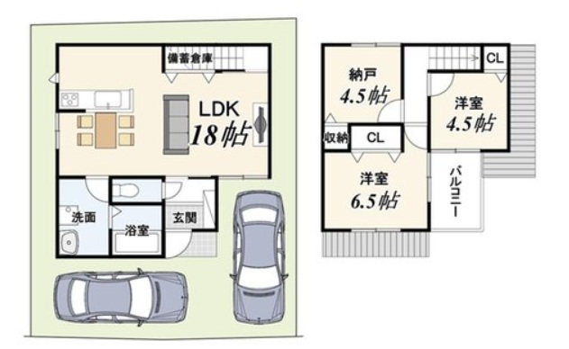 • 区画図+建物プラン例